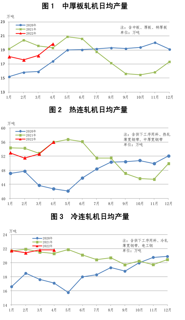 4月份,重點統(tǒng)計企業(yè)中厚板軋機、熱連軋機產(chǎn)量環(huán)比增幅擴大,冷連軋機產(chǎn)量環(huán)比持平;三類軋機產(chǎn)量同比均有小幅增長。產(chǎn)品價格均呈連續(xù)上升走勢。在主要品種中,造船板產(chǎn)量同比大幅上升,集裝箱板產(chǎn)量同比降幅較大,汽車板產(chǎn)量同比降幅有所擴大。