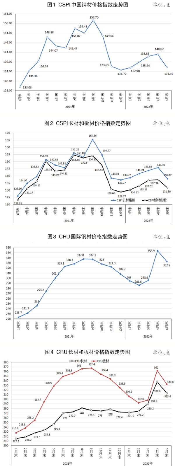 5月份,CRU國際鋼材價格指數為332.9點,環比下降21.0點,降幅為5.9%;同比上升31.8點,升幅為10.6%。(見圖3)