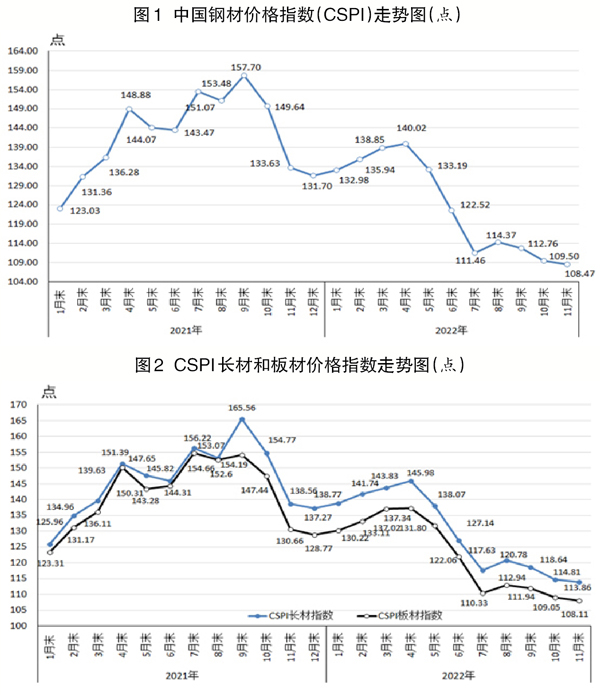 11月份,由于天氣轉冷,國內部分地區鋼材市場需求呈下降趨勢,鋼材價格繼續小幅下降。進入12月份以來,隨著疫情防控措施的調整,市場預期有所好轉,鋼材價格呈小幅回升走勢。
