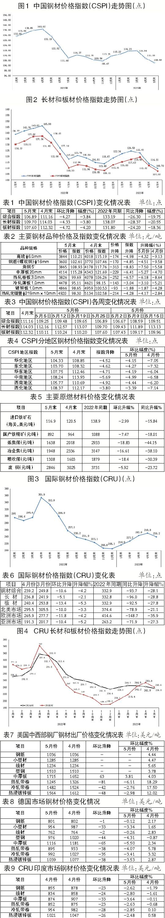 5月份,CSPI國內鋼材綜合指數呈波動下行走勢。其中,第二周、第三周小幅回升,第四周由升轉降。進入6月份以來,鋼材價格第一周繼續下行,第二周、第三周小幅上升。