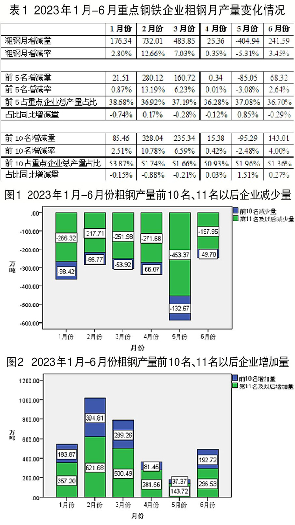上半年,89家重點鋼鐵企業中有37家鋼鐵企業的粗鋼產量同比減少,合計減量為1127.69萬噸,降幅為9.36%;有52家鋼鐵企業粗鋼產量同比增加,合計增量為2414.41萬噸,增幅為8.34%。