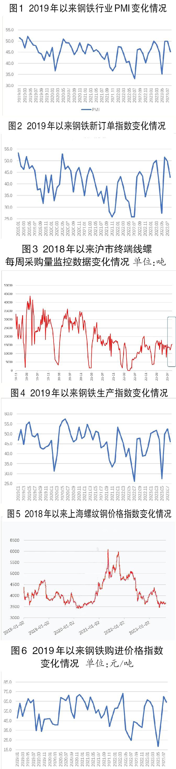 8月份,國內鋼市淡季效應持續,市場需求繼續下降。新訂單指數為42.9%,環比下降6.9個百分點,連續2個月下降,顯示市場需求沒有起色。需求下降,一是因為8月份高溫多雨的天氣仍有所持續,基建方面開工率一般,鋼材需求釋放緩慢;二是因為房地產市場波動給鋼材市場帶來些許負面影響。據了解,當前各地市場信心偏弱,鋼材購買意愿不強。從監測的滬市終端線螺采購數據來看,終端采購市場也相對較弱,8月份上海終端采購變化不大,月均微增2.76%,持續處于偏低水平。相比于國內市場的相對低迷,鋼材出口方面表現較好,主要原因是當前國內鋼材價格偏低,有一定價格優勢,新出口訂單指數為60.1%,環比上升8.3個百分點,連續3個月明顯上升,鋼鐵出口呈現加快上升勢頭。