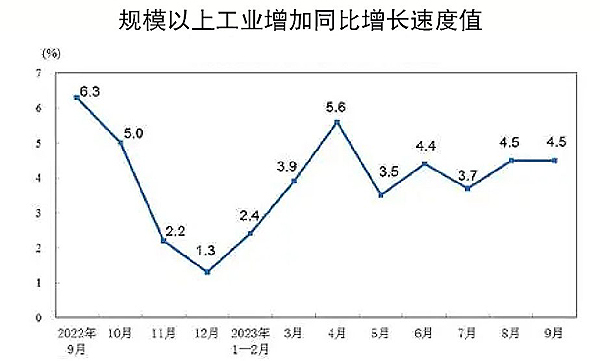 本報訊 據國家統計局數據,9月份我國規模以上工業增加值同比實際增長4.5%(增加值增速均為扣除價格因素的實際增長率),環比增長0.36%。其中,黑色金屬冶煉和壓延加工業同比增長9.9%;鋼材產量同比增長5.5%,到11782萬噸。