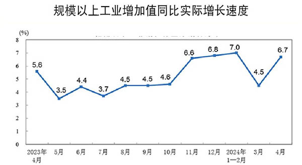 本報訊 據國家統(tǒng)計局數據,4月份,我國規(guī)模以上工業(yè)增加值同比實際增長6.7%(增加值增速均為扣除價格因素的實際增長率),環(huán)比增長0.97%。其中,黑色金屬冶煉和壓延加工業(yè)增加值同比增長2.0%。1月—4月份,規(guī)模以上工業(yè)增加值同比增長6.3%。