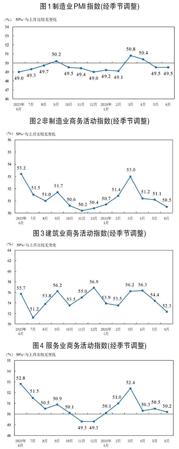 其中,制造業采購經理指數運行情況從企業規???,6月份大型企業PMI環比下降0.6個百分點至50.1%;中、小型企業PMI環比分別上升0.4個和0.7個百分點至49.8%和47.4%。