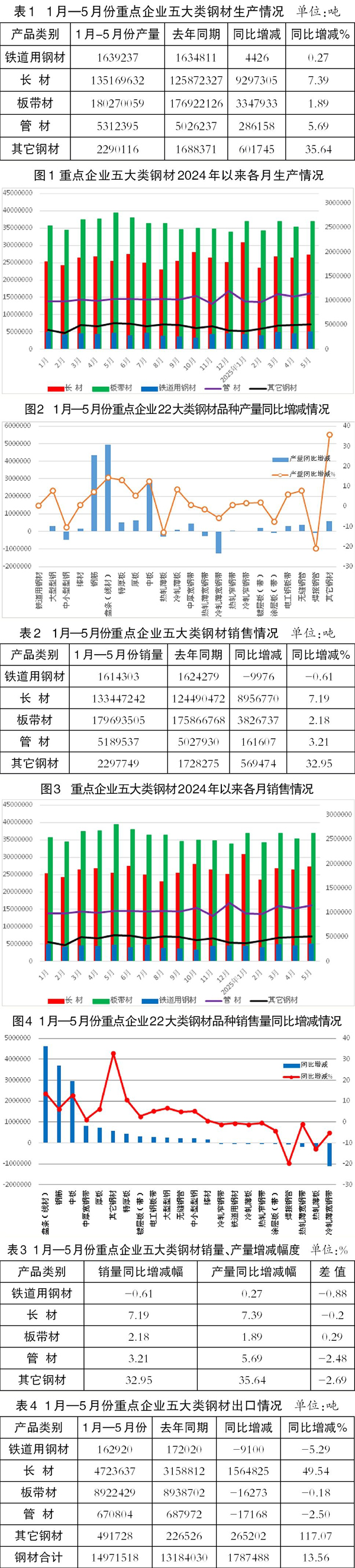 1月—5月份,重點企業(yè)鋼材產量、銷售量,特別是鋼筋、線材等長材產量、銷售量同比增長較多,應是在2024年底一系列提振經濟政策、2024年第4季度多地舉行重大項目集中開工活動等因素的作用下,鋼材貿易商等主體市場參與意愿增強、加大鋼筋等品種采購力度的結果。