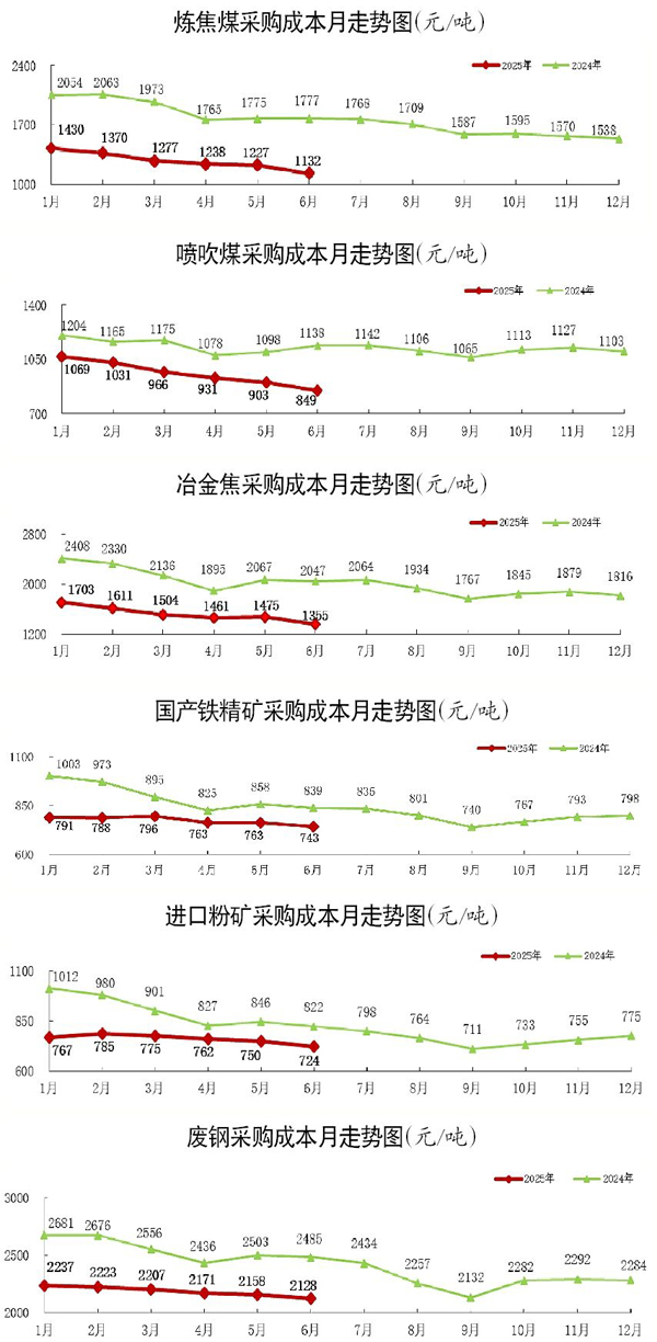 1月—6月份,各品種采購成本同比均有較大幅度下降。