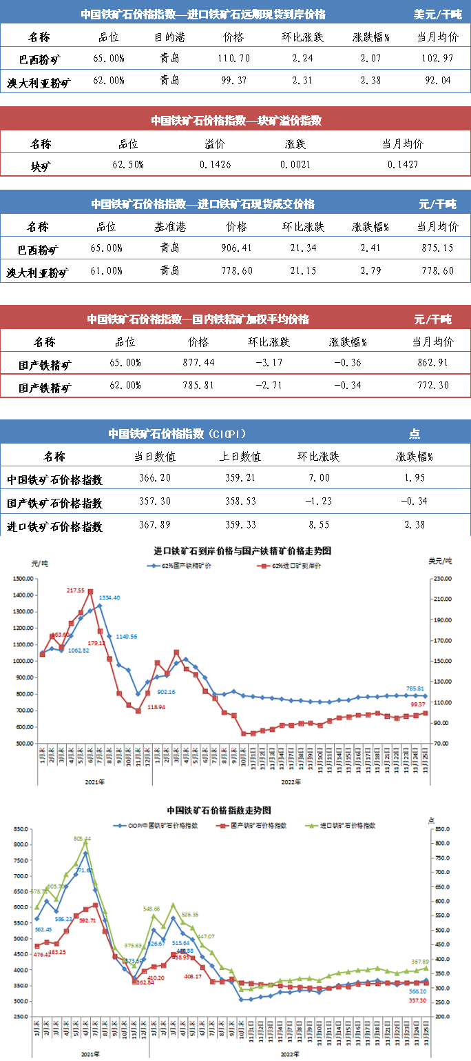【行業指數】11月25日中國鐵礦石價格指數