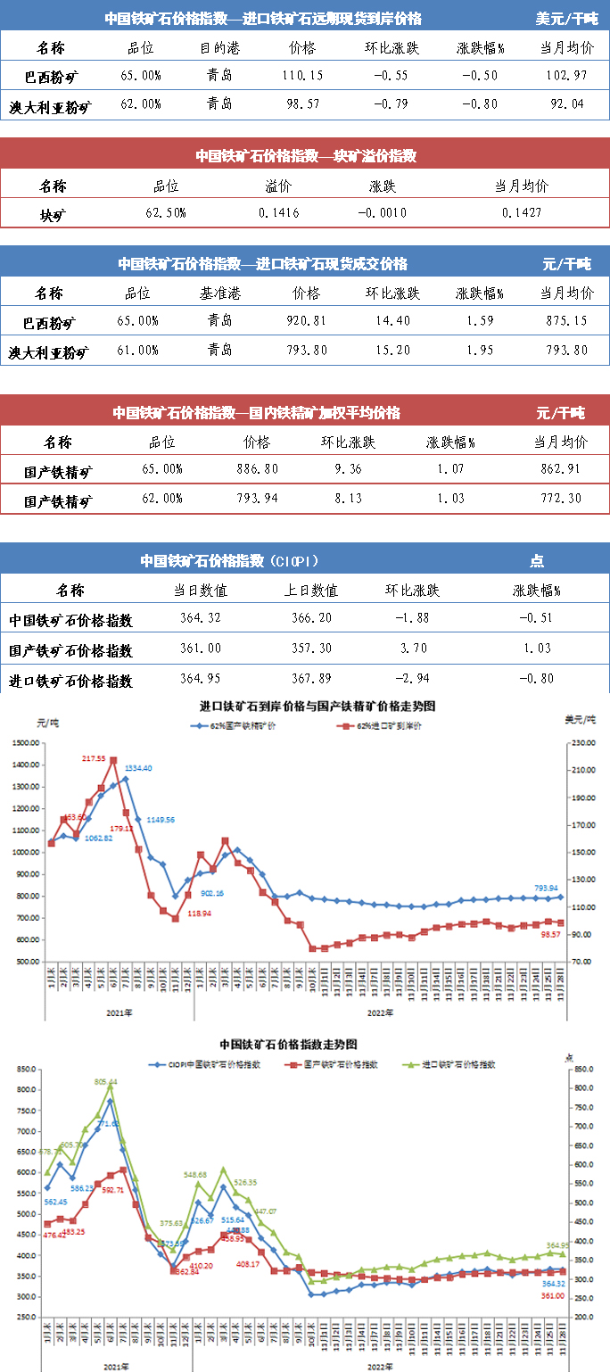 【行業(yè)指數(shù)】11月28日中國(guó)鐵礦石價(jià)格指數(shù)