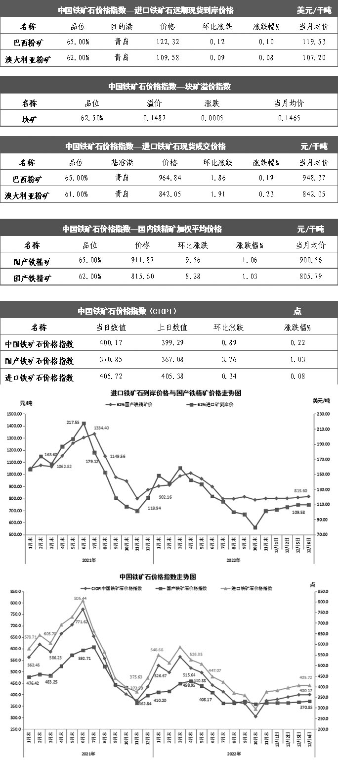 【行業指數】12月6日中國鐵礦石價格指數