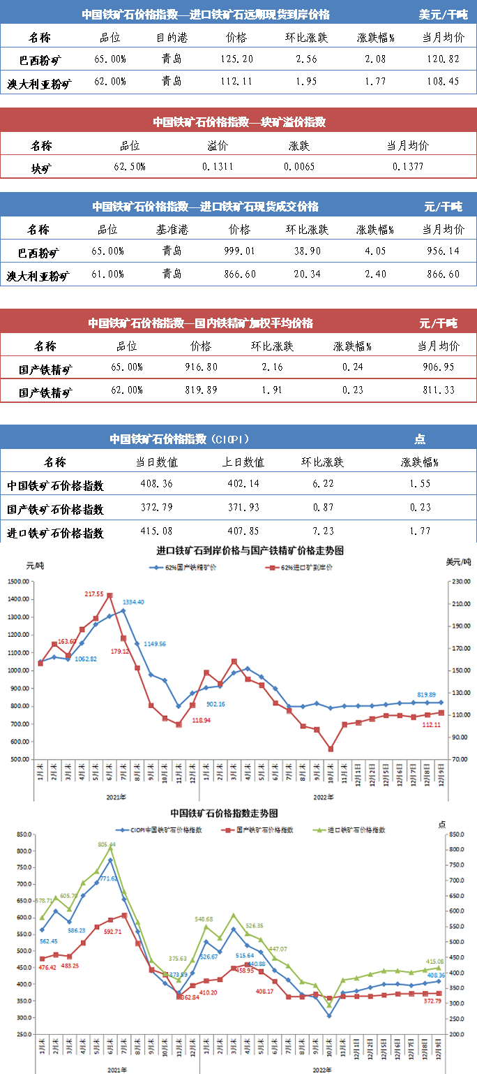 【行業(yè)指數(shù)】12月9日中國鐵礦石價格指數(shù)