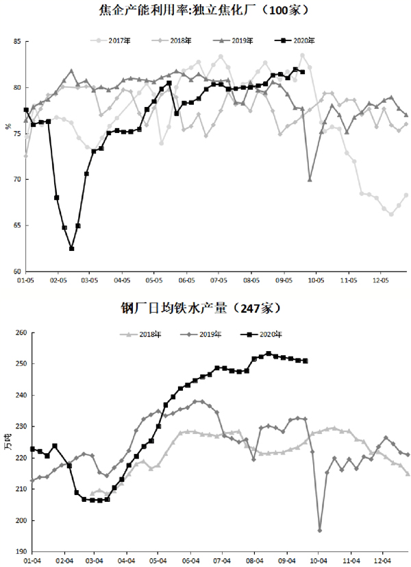 供給方面,上周,相關機構調研數據顯示,樣本焦企產能利用率為81.68%,環比小幅下降0.31個百分點,整體處于高位。另外,國家統計局最新數據顯示,8月份,我國焦炭產量為4128萬噸,環比上升3.28%,同比上升3.2%。1月~8月份,我國焦炭累計產量為30772.4萬噸,累計同比下降1.51%。焦化行業的高利潤刺激導致焦炭產量大增,焦炭8月產量達近幾年來月產量最高水平;焦炭產量累計同比下降幅度也逐步收窄。