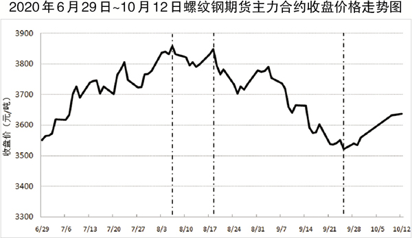 從螺紋鋼期貨主力合約價(jià)格走勢圖可以看出,螺紋鋼收盤價(jià)自9月26日開始出現(xiàn)回升跡象,而其最高價(jià)和最低價(jià)則從9月30日開始出現(xiàn)反彈。