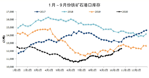 中秋、國慶“雙節”前,受鋼廠階段性補庫存、唐山市鋼廠環保限產對高爐實際生產影響較小等因素影響,鐵礦石期貨出現較大幅度反彈。“雙節”后,隨著鋼廠補庫存熱潮退去,盤面向供應寬松格局回歸。