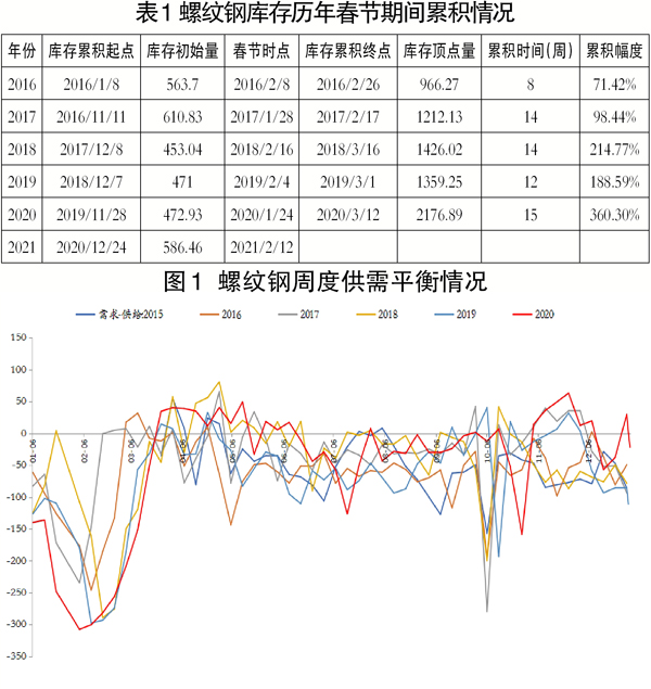 首先,在需求轉弱背景下,2021年1月后鋼材大概率庫存累積。2020年12月下旬之后,隨著天氣的轉冷,市場需求開始逐步走弱,螺紋鋼庫存降速也持續放緩。 截至2020年12月底,螺紋鋼開始出現首周庫存累積,當周(2020年12月28日~12月31日)螺紋鋼庫存為622.25萬噸,環比回升35.79萬噸。從歷史數據看,每年春節前8周~11周左右,鋼材庫存拐點開始出現。目前距離春節有6周左右的時間,結合當下基本面情況,筆者認為庫存拐點出現概率較大,后期可能開始持續庫存累積。