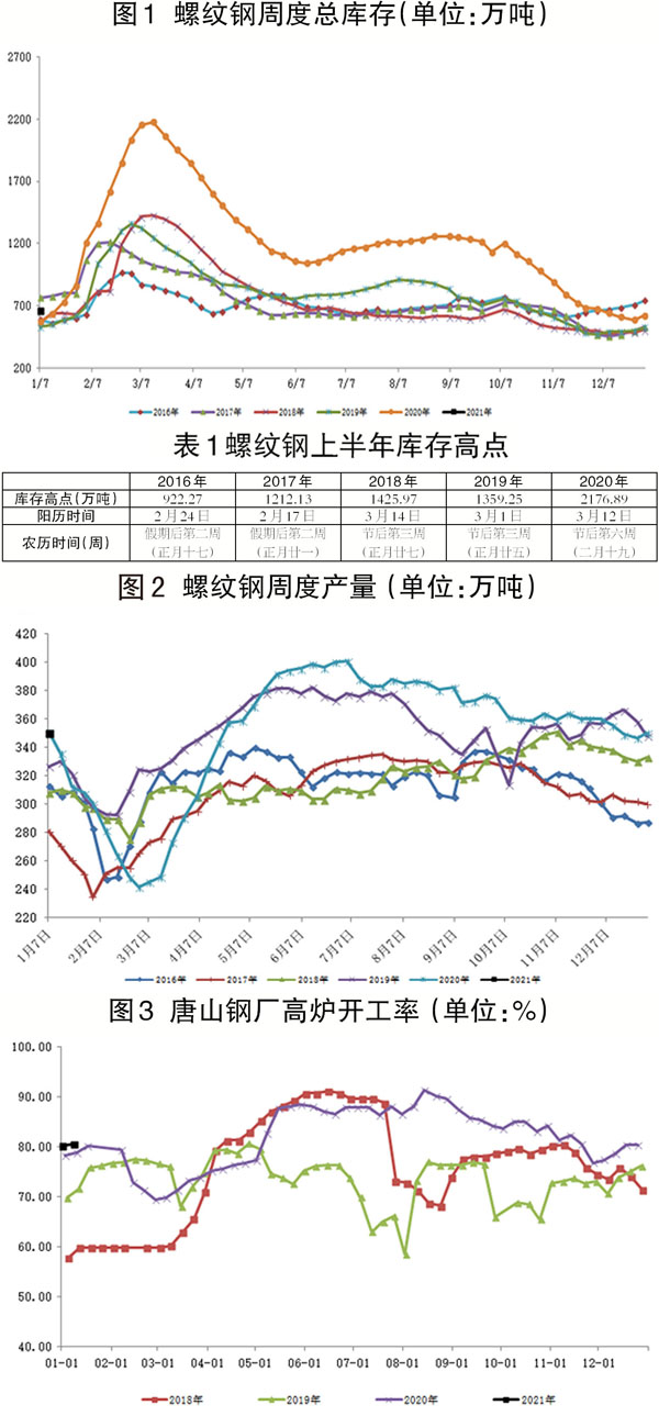 入冬以后,國內疫情反復,尤以河北省為甚。自1月7日起,河北省石家莊市等地區開始執行疫情封鎖措施,物流運輸已開始受到影響。截至1月7日,螺紋鋼周產量為349.49萬噸,同比下降0.78萬噸,較2020年第四季度周均值358.65萬噸下降9.16萬噸,整體平穩;同期河北省唐山市鋼廠高爐開工率80.56%,同比增高1.73個百分點,較2020年第四季度周均值81.44%下降0.88個百分點,基本持平。據相關機構調研,2020年12月底全國樣本高爐企業螺紋鋼利潤為92元/噸,環比減少55元/噸;熱卷利潤為314元/噸,環比增加64元/噸。考慮到利潤尚可和政府應對疫情能力較強,筆者認為河北省鋼材產量將穩中小降,不會出現去年上半年的大幅波動。