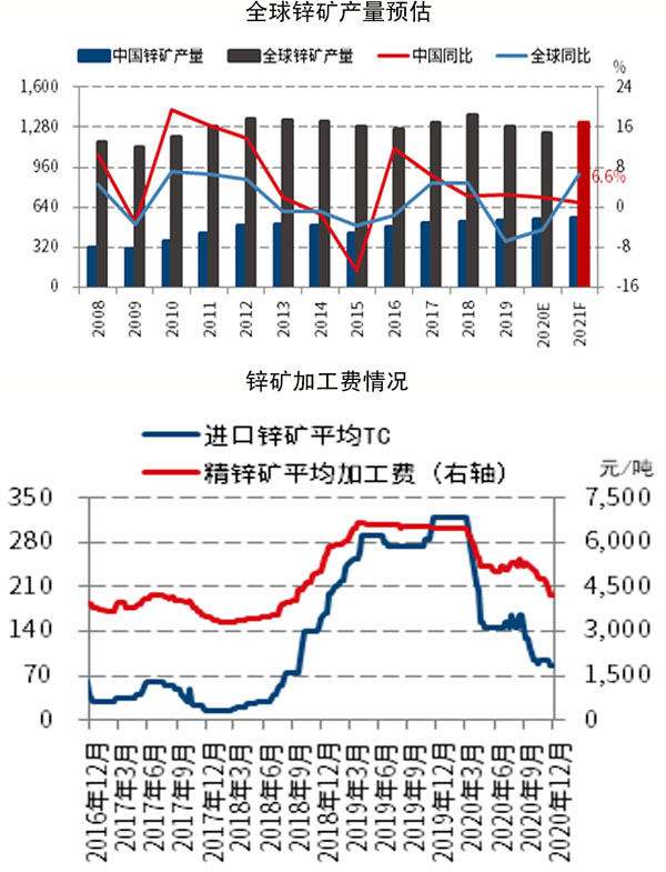 展望2021年,鋅價或?qū)⒔?jīng)歷先揚后抑的過程。2021年上半年鋅價大概率維持強勢,從宏觀面來看,隨著美國大選等宏觀事件塵埃落定,市場一致性預(yù)期修復(fù),以及新冠肺炎疫苗帶來的樂觀預(yù)期,鋅等順周期品種有望延續(xù)漲勢;從基本面來看,海外疫情二次暴發(fā)的可能性將導(dǎo)致礦端存在重大不確定性,冶煉費的連續(xù)走低或?qū)⒃斐梢睙捘芰︶尫牌o,而消費或?qū)⒃谛屡f基建的雙輪驅(qū)動下維持景氣,鋅市或?qū)⒀永m(xù)供小于求的態(tài)勢。而進入下半年,隨著國內(nèi)外鋅礦產(chǎn)能的陸續(xù)恢復(fù),鋅礦長期供應(yīng)過剩的預(yù)期將逐步兌現(xiàn),鋅價可能重回弱勢軌道。