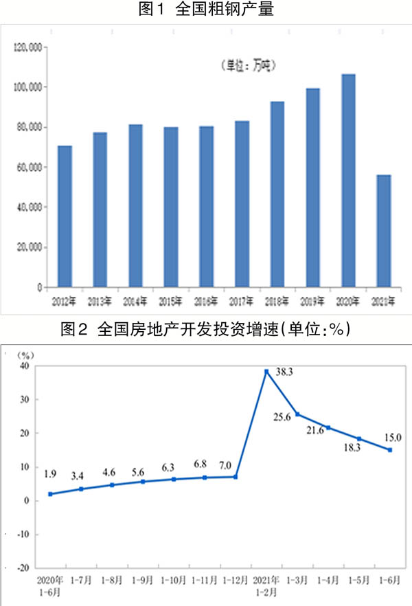 1月~6月份,全國(guó)房地產(chǎn)開發(fā)投資72179億元,同比增長(zhǎng)15.0%,比2019年1月~6月份增長(zhǎng)17.2%,兩年平均增長(zhǎng)8.2%。1月~6月份房地產(chǎn)新開工面積同比增長(zhǎng)3.8%。盡管以上兩項(xiàng)數(shù)據(jù)仍是正增長(zhǎng),開發(fā)投資增速連續(xù)4個(gè)月收窄和新開工面積回落較大均說(shuō)明在土地市場(chǎng)漸冷和調(diào)控政策收緊下,下半年樓市面臨壓力,建筑鋼材需求從大周期上正值或已過(guò)峰值。