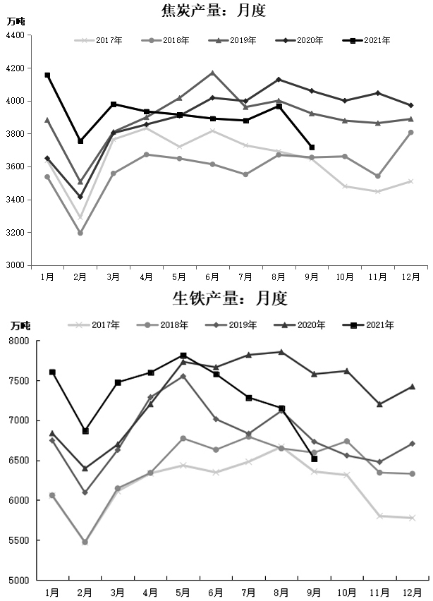 需求方面,鋼鐵市場在粗鋼產(chǎn)量同比不增及能耗雙控政策的雙重制約下,粗鋼、生鐵產(chǎn)量均有明顯下降。其中粗鋼產(chǎn)量1月~9月份累計同比增幅已收窄至2.0%,若10月~12月份單月產(chǎn)量按照9月份產(chǎn)量的7375.0萬噸計算,全年粗鋼產(chǎn)量約為10.27億噸,較去年全年減少3800萬噸,將順利完成粗鋼年控任務。同時,這也表明鋼廠進一步減產(chǎn)的空間不大,甚至有一定的回升空間。另外,生鐵產(chǎn)量1月~9月份累計同比增長轉(zhuǎn)負,即已低于去年同期水平。從近期市場反應來看,粗鋼減量措施成效明顯,疊加有關部門糾正“一刀切”停產(chǎn)限產(chǎn)或“運動式”減碳的行為,部分地區(qū)限產(chǎn)、限電有所放松,鋼廠高爐逐步復產(chǎn)。數(shù)據(jù)顯示,上周247家鋼廠高爐產(chǎn)能利用率為80.05%,環(huán)比減少0.61個百分點,同比減少12.29個百分點;日均鐵水產(chǎn)量為214.58萬噸左右,環(huán)比減少1.64萬噸,同比減少31.21萬噸。目前焦炭需求仍處于偏低水平,預計后期隨著限產(chǎn)放松有望迎來好轉(zhuǎn)。