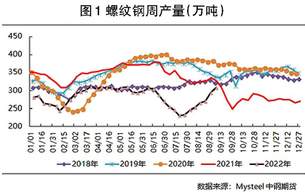 螺紋鋼產(chǎn)量自7月21日當(dāng)周見底后,已連續(xù)7周反彈。9月1日—7日,螺紋鋼周產(chǎn)量達(dá)307.63萬(wàn)噸,周環(huán)比上升13.82萬(wàn)噸,同比下降19.6萬(wàn)噸(見圖1)。盡管螺紋鋼產(chǎn)量環(huán)比增速較之前一周有所放緩,但仍處于偏高水平。具體來(lái)看,長(zhǎng)流程鋼廠產(chǎn)量上升較快,短流程鋼廠產(chǎn)量在上升過(guò)程中有反復(fù),這主要與利潤(rùn)和用電情況有關(guān)。一方面,盡管利潤(rùn)低,高爐生產(chǎn)仍保持盈利,且隨著國(guó)慶假期臨近,鋼廠生產(chǎn)備貨在持續(xù);另一方面,電弧爐生產(chǎn)在短暫的扭虧為盈后,再度陷入虧損狀態(tài)。據(jù)統(tǒng)計(jì),截至9月7日,全國(guó)40家獨(dú)立電弧爐鋼廠平均利潤(rùn)為-182元/噸,谷電利潤(rùn)為-78元/噸,周環(huán)比下降60元/噸。虧損導(dǎo)致企業(yè)生產(chǎn)積極性下降,且前期川渝地區(qū)因電力短缺導(dǎo)致當(dāng)?shù)氐碾娀t鋼廠停產(chǎn)。目前來(lái)看,該地區(qū)的電弧爐鋼廠已全面復(fù)產(chǎn),加之高爐生產(chǎn)穩(wěn)步推進(jìn),未來(lái)螺紋鋼產(chǎn)量或保持升勢(shì)。