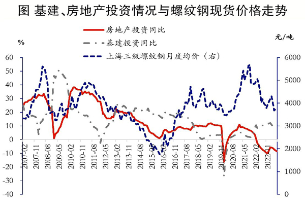 通過上面的分析可以看出,今年旺季期間依然呈現基建對沖房地產的格局。一般在這種情況下,螺紋鋼現貨價格的表現是相對偏弱的。且前期螺紋鋼盤面過度反映了旺季需求恢復的預期,導致盤面小幅升水現貨。如果旺季現實需求低于預期的話,可能會導致螺紋鋼盤面價格回調。