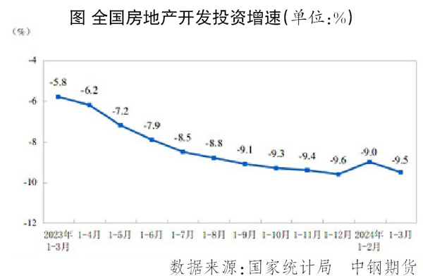 國家統計局數據顯示,1月—3月份,全國房地產開發投資為22082億元,同比下降9.5%。其中,住宅投資為16585億元,同比下降10.5%。3月份,全國房地產開發投資額為1.0萬億元,同比下降10.1%。