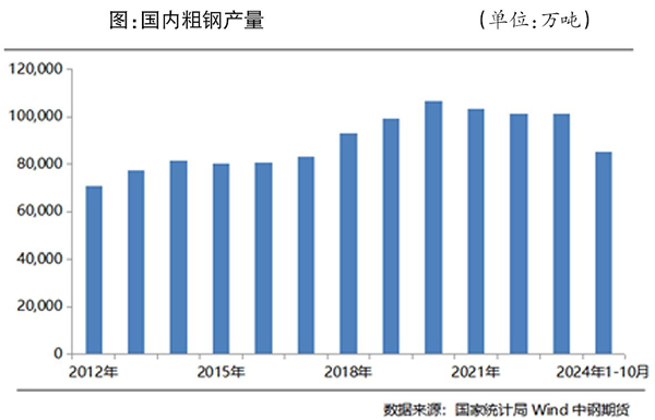 國家統計局數據顯示,2024年10月份,中國粗鋼產量為8188萬噸,同比增長2.9%;生鐵產量為7026萬噸,同比增長1.4%;鋼材產量為11941萬噸,同比增長3.5%。1月—10月份,中國粗鋼產量為85073萬噸,同比下降3.0%;生鐵產量為71511萬噸,同比下降4.0%;鋼材產量為116484萬噸,同比增長0.5%。