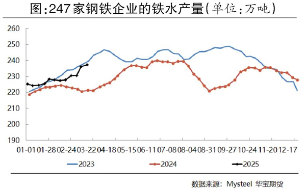 筆者認(rèn)為,第1季度關(guān)稅政策對(duì)黑色系期貨價(jià)格的影響不充分,后續(xù)會(huì)對(duì)鐵礦石價(jià)格帶來(lái)三方面影響:一是直接貿(mào)易,關(guān)稅政策落地將進(jìn)一步拖累鋼材出口需求;二是轉(zhuǎn)口影響,第1季度黑色系期貨定價(jià)偏強(qiáng),轉(zhuǎn)口國(guó)關(guān)稅大幅增加,后期鐵礦石價(jià)格可能轉(zhuǎn)弱;三是關(guān)稅升級(jí)后國(guó)內(nèi)政策增量預(yù)期增強(qiáng),關(guān)注4月下旬中共中央政治局會(huì)議在財(cái)政端或房地產(chǎn)端政策及貨幣政策增量。短期關(guān)注超預(yù)期的鐵水產(chǎn)量,4月份若消費(fèi)刺激和搶出口需求拐點(diǎn)出現(xiàn),黑色系期貨存在負(fù)反饋下跌壓力,鐵礦石供需寬松壓力將進(jìn)一步凸顯。