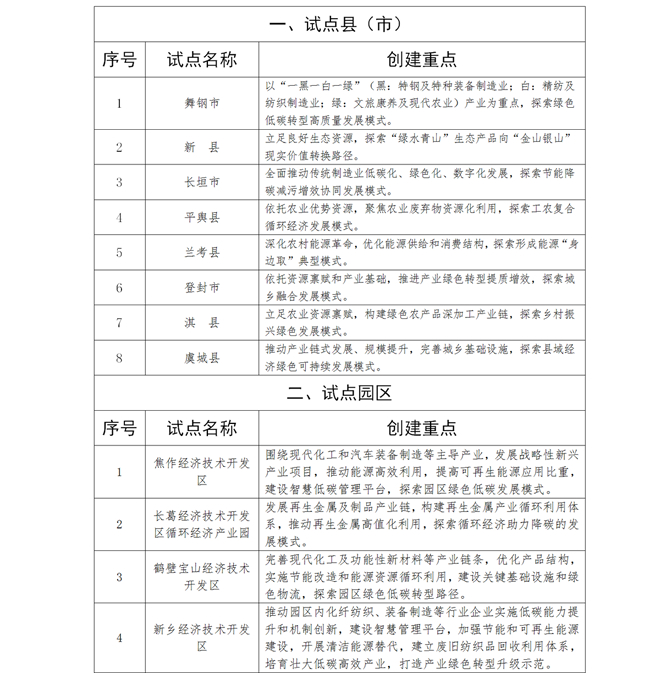 河南省碳達峰試點名單