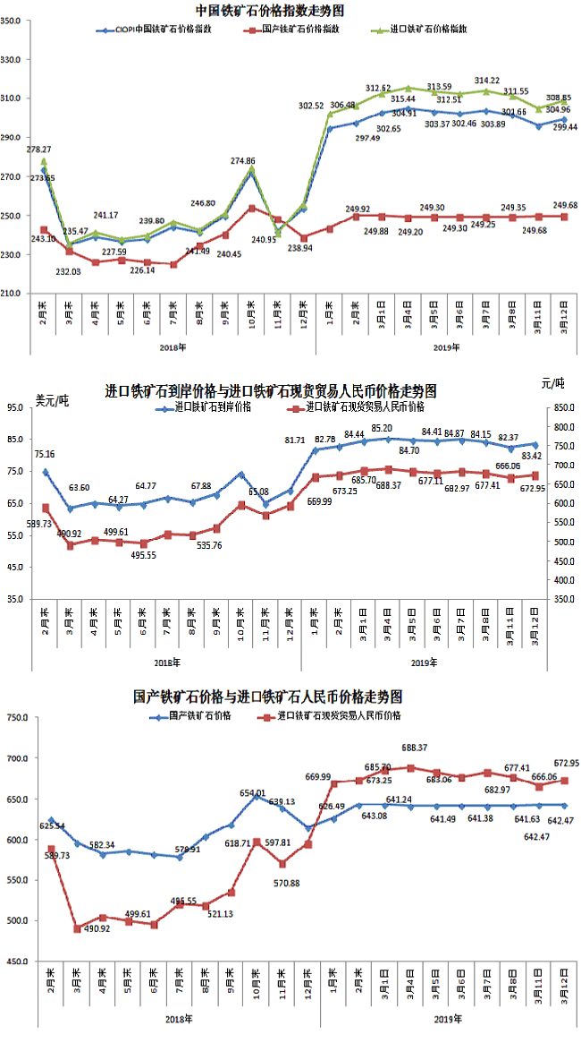 3月12日,中國(guó)鐵礦石價(jià)格指數(shù)(CIOPI)299.44點(diǎn),環(huán)比上升3.27點(diǎn),升幅為1.10%。其中:國(guó)產(chǎn)鐵礦石價(jià)格指數(shù)為249.68點(diǎn),環(huán)比持平;進(jìn)口鐵礦石價(jià)格指數(shù)為308.85點(diǎn),環(huán)比上升3.89點(diǎn),升幅為1.27%。