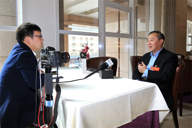 11點半,小組會議結束。我和同事匆匆跑到2樓大廳,找好合適的位置,擺放好采訪裝備。不久后,趙繼委員也到了。因為要錄播視頻,趙繼委員一直耐心地配合我們。他擔心坐的位置過遠,設備收錄的聲音不夠清晰,同時又擔心高聲說話影響到旁邊其他媒體的采訪,連問了幾次“我要不要往前坐一坐”。如此細心的趙繼委員讓我和同事非常感動。