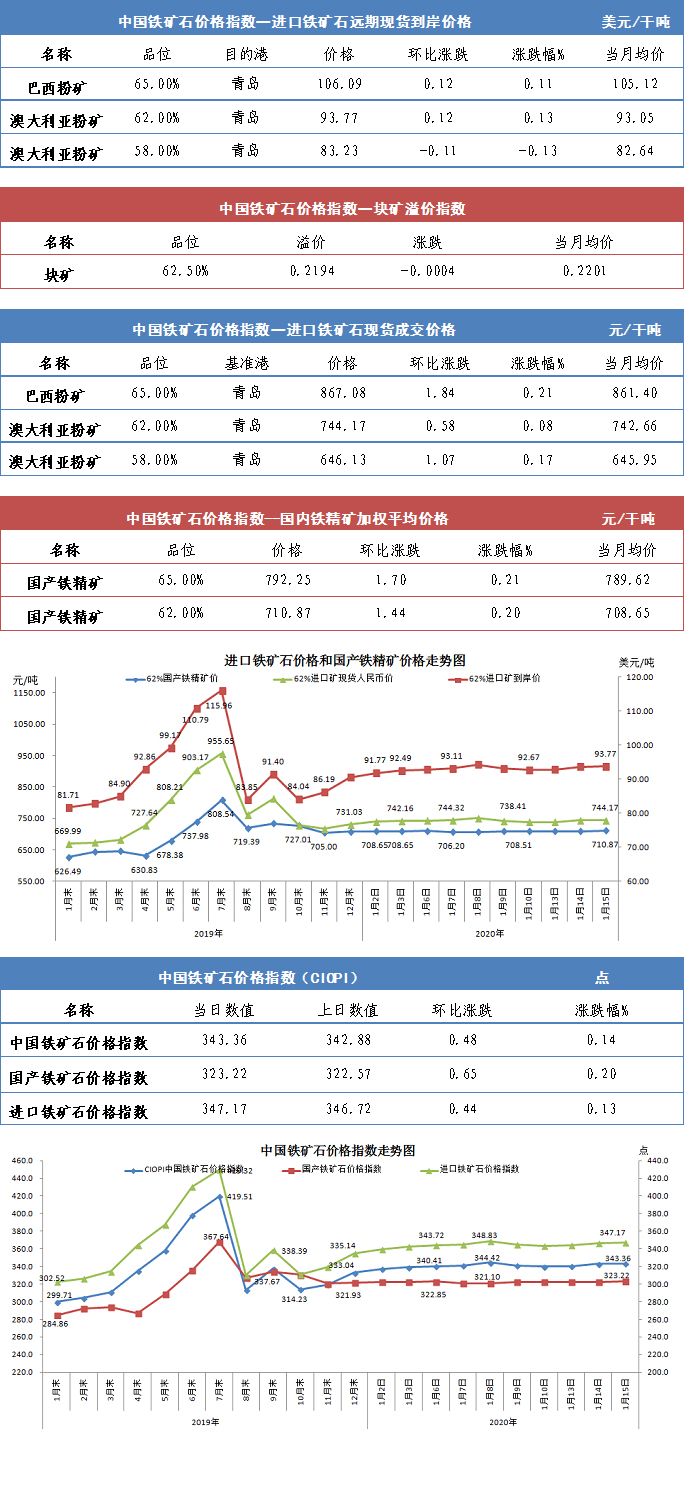 【行業(yè)指數(shù)】1月15日中國鐵礦石價格指數(shù)