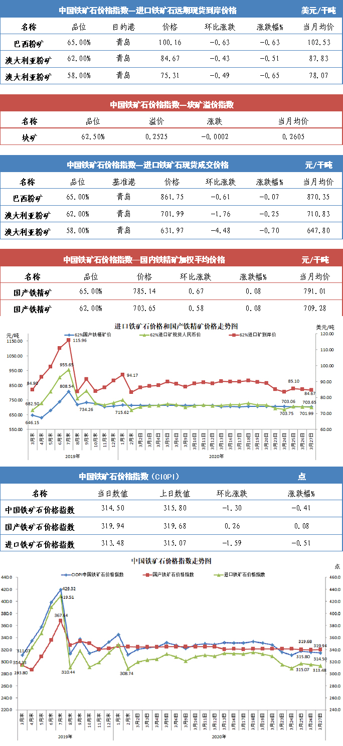 【行業指數】3月27日中國鐵礦石價格指數