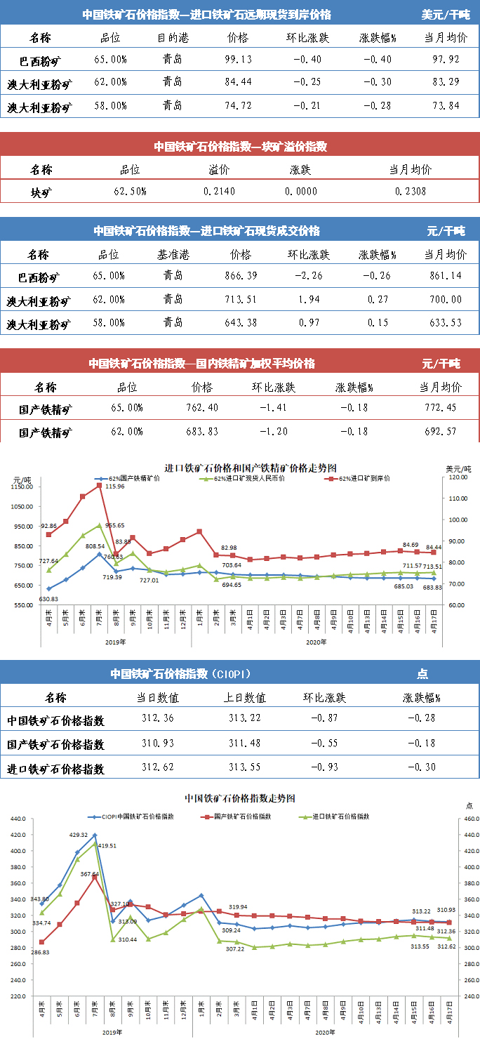 【行業(yè)指數(shù)】4月17日中國(guó)鐵礦石價(jià)格指數(shù)
