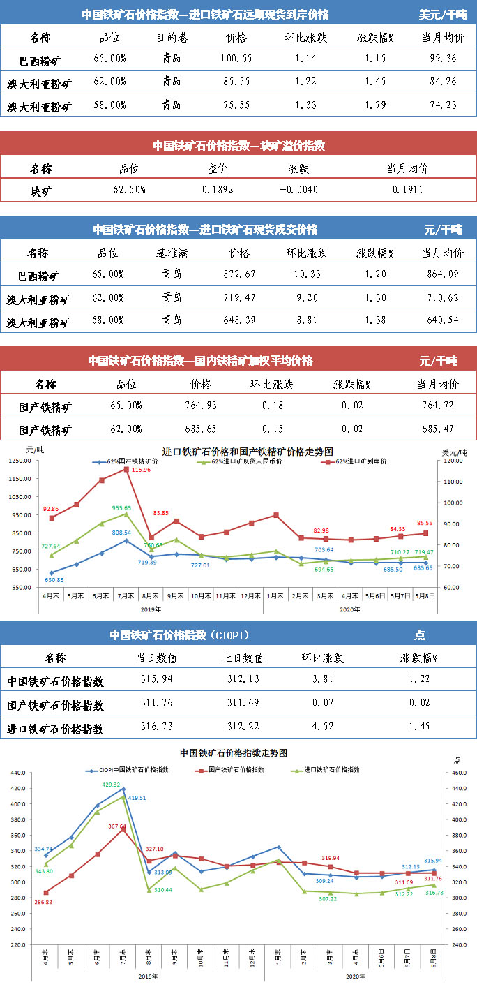 【行業(yè)指數(shù)】5月8日中國(guó)鐵礦石價(jià)格指數(shù)