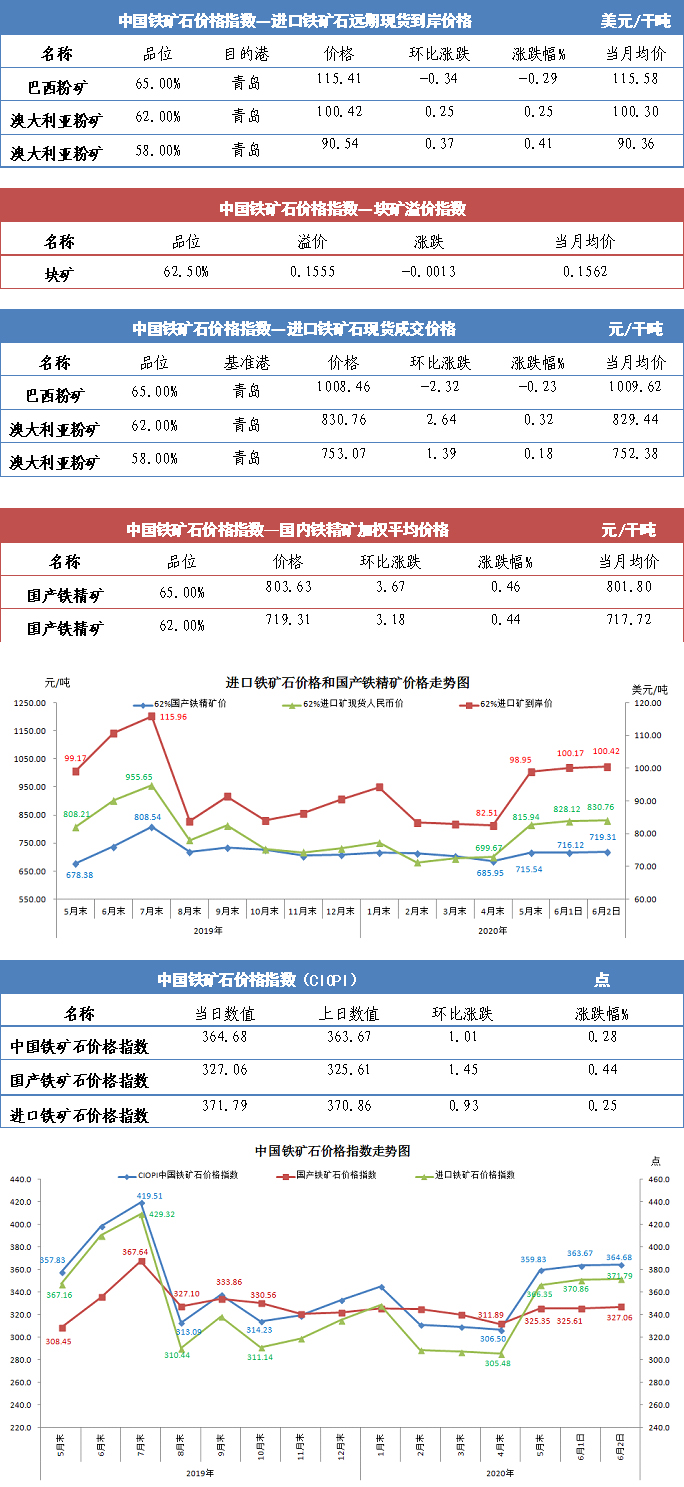 【行業指數】6月2日中國鐵礦石價格指數