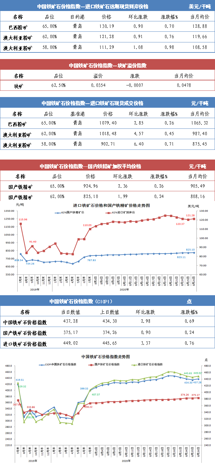 【行業指數】8月26日中國鐵礦石價格指數