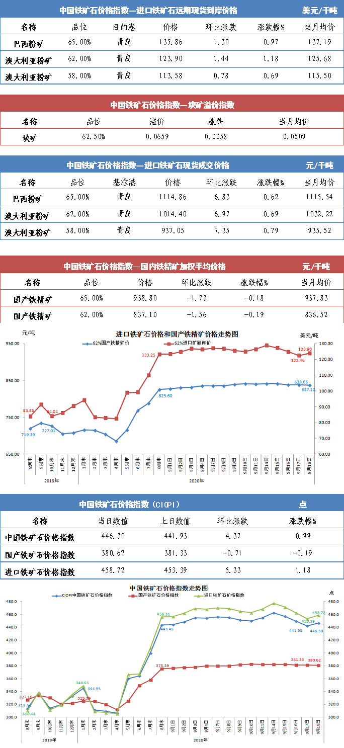 【行業指數】9月18日中國鐵礦石價格指數