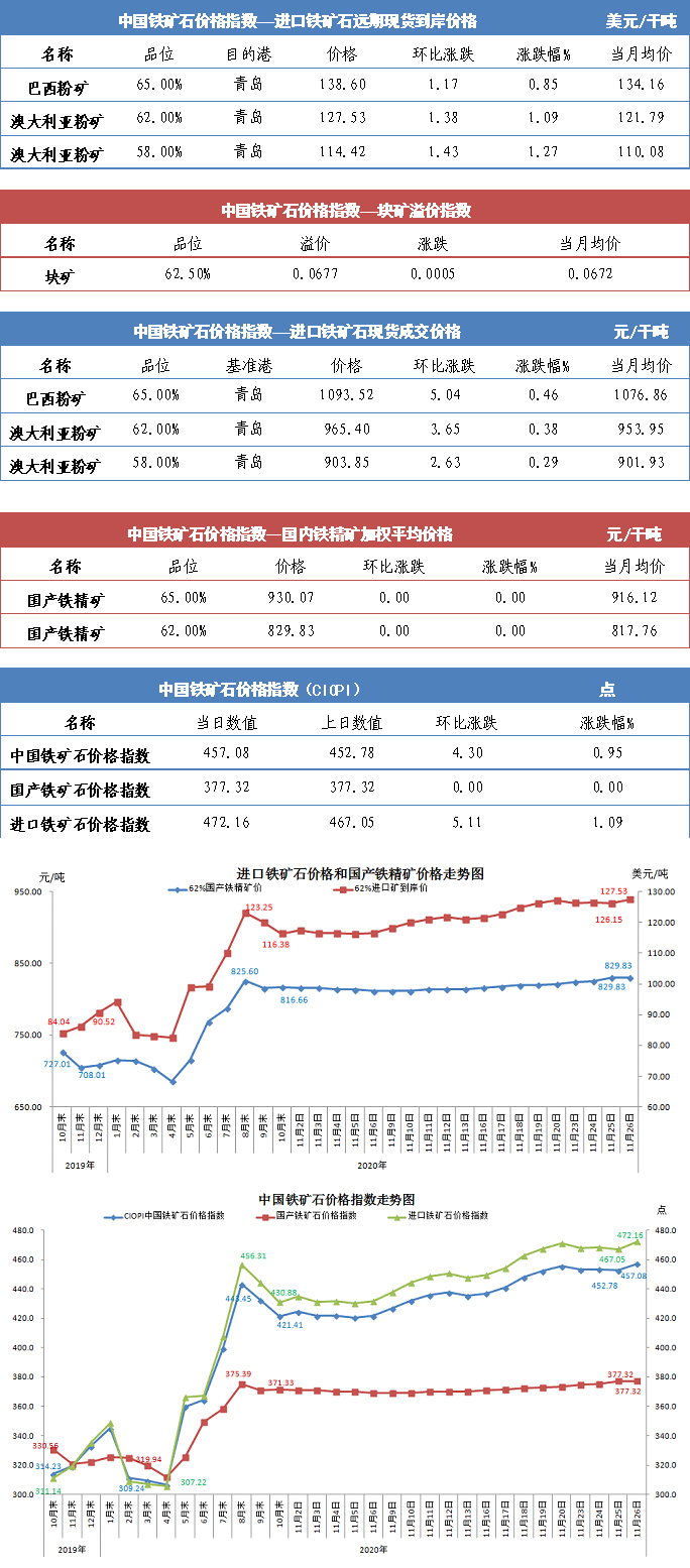 【行業(yè)指數(shù)】11月26日中國鐵礦石價(jià)格指數(shù)