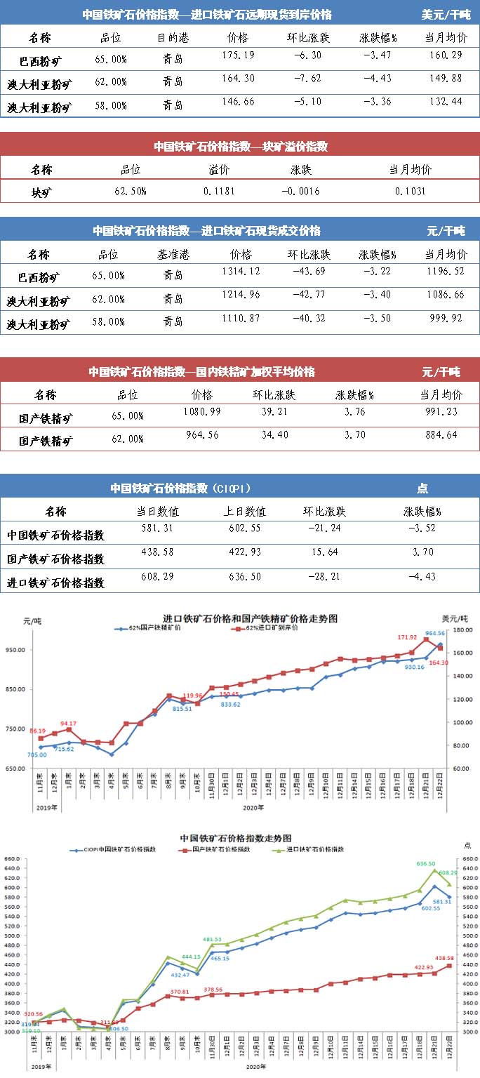 【行業(yè)指數(shù)】12月22日中國(guó)鐵礦石價(jià)格指數(shù)