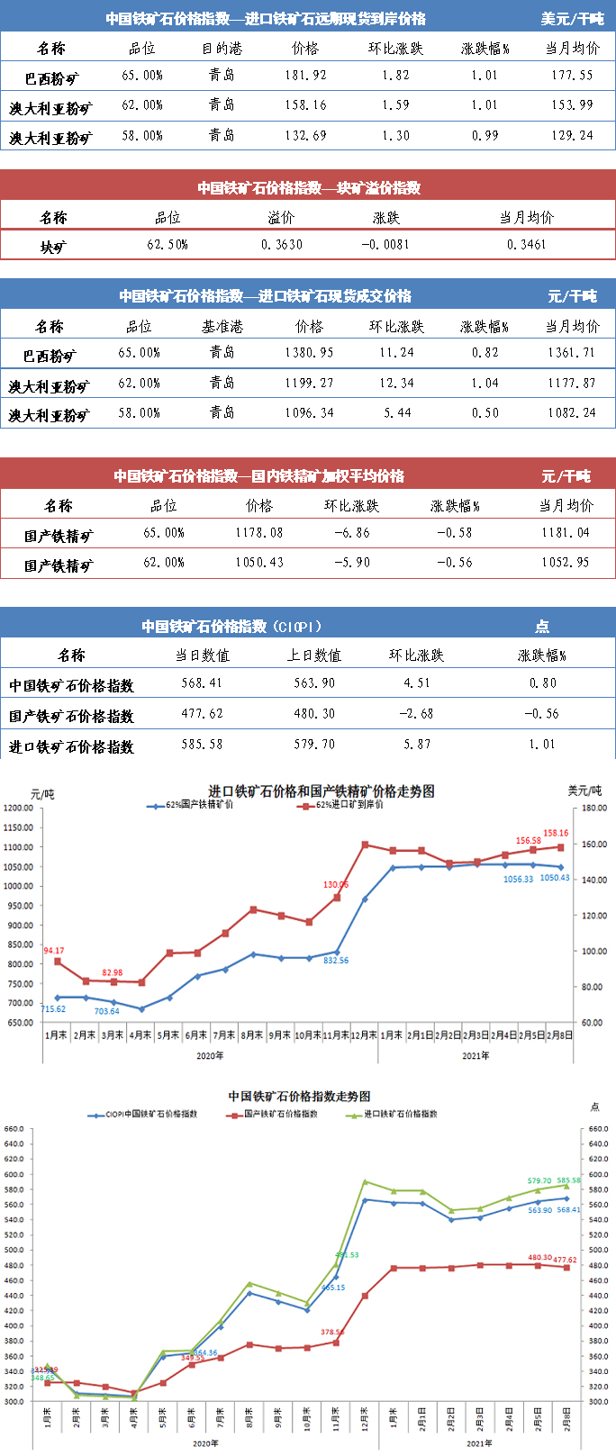 【行業(yè)指數(shù)】2月8日中國鐵礦石價(jià)格指數(shù)