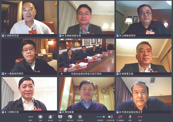 3月6日,來自鋼鐵行業(yè)的6位全國人大代表和全國政協(xié)委員,以及中國鋼鐵工業(yè)協(xié)會黨委副書記姜維;鋼協(xié)副秘書長,中國冶金報社黨委書記、社長陳玉千通過視頻連線“云聚”中國冶金報社兩會會客廳。圖為“云合照”。(本報兩會報道組記者 顧學超 攝 代鑫 制圖)