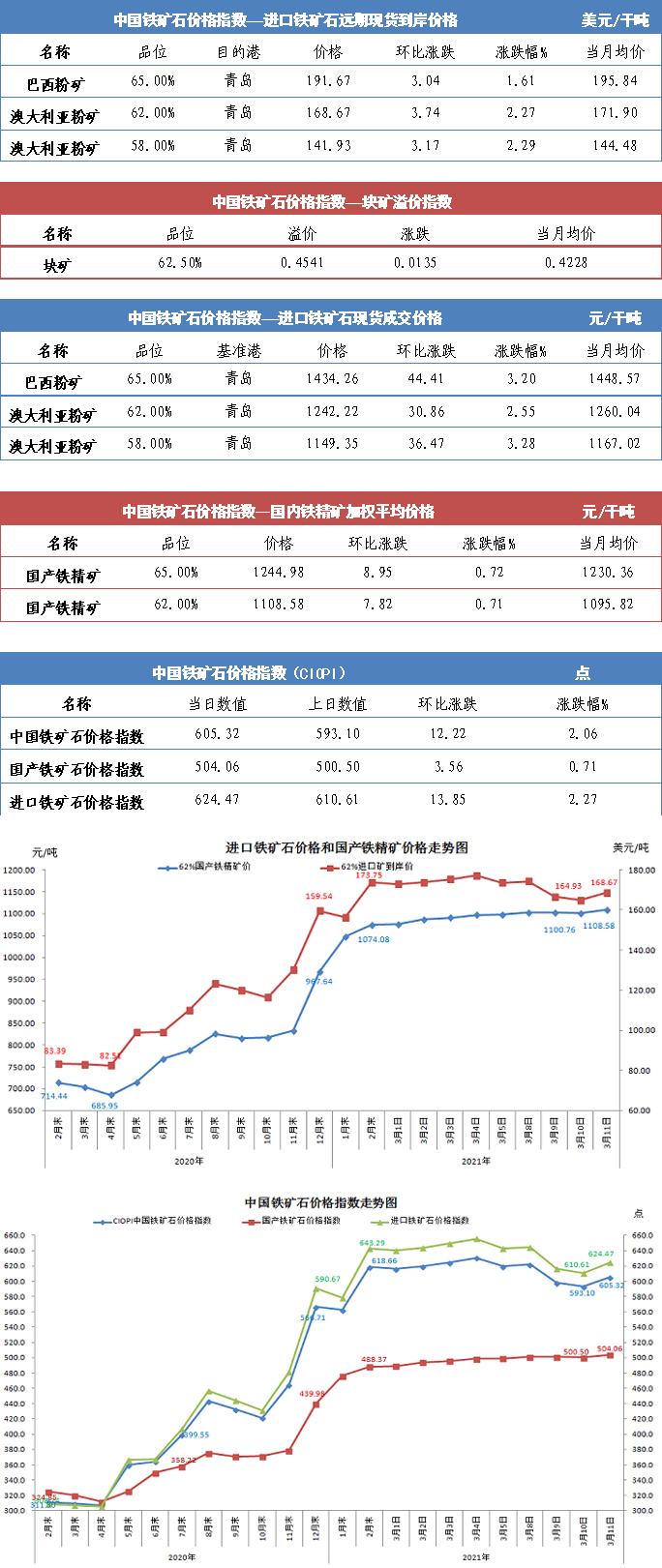 【行業(yè)指數(shù)】3月11日中國鐵礦石價格指數(shù)
