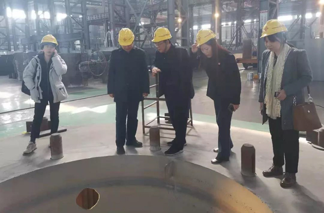 圖為攝制項目組一行在共昌軋輥現場調研