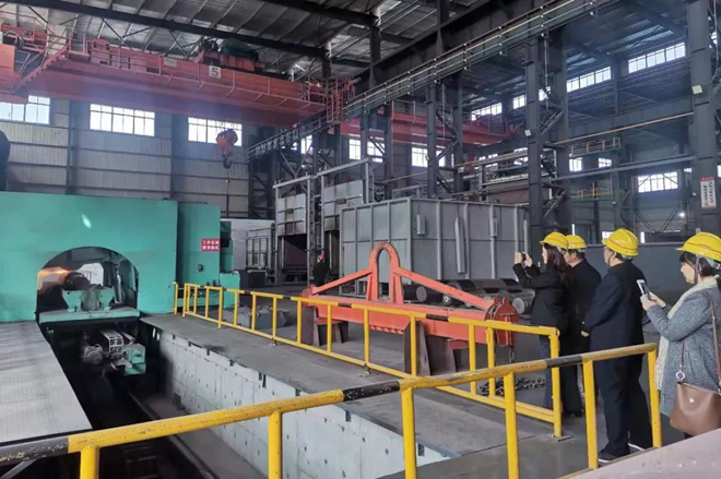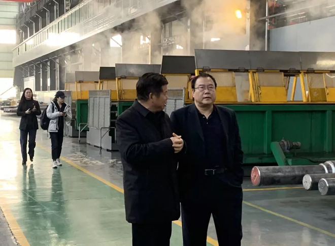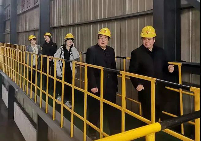 《鋼鐵脊梁》攝制項目組一行還參觀了共昌軋輥ESP(無頭連鑄連軋)精品軋輥生產線、高端微通道鋁扁管及電工鋁桿系列產品生產線等項目。