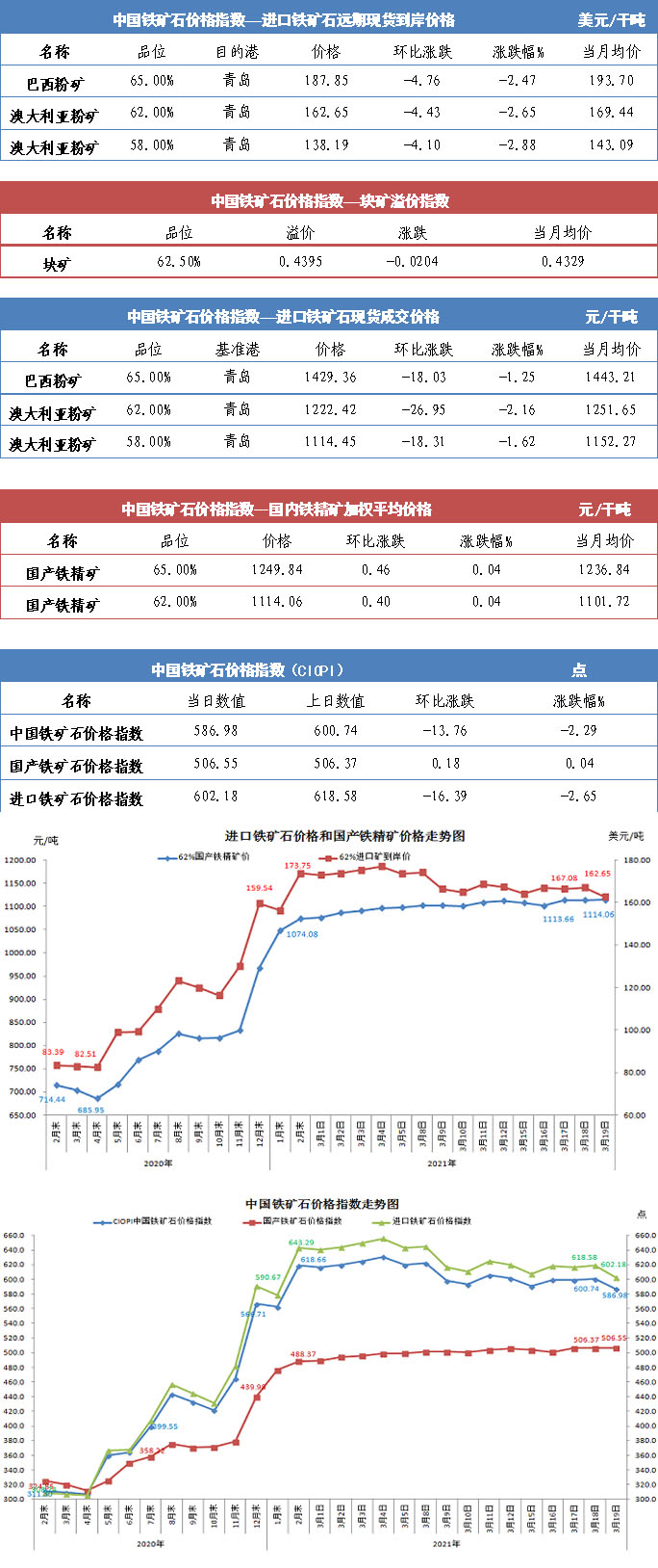 【行業(yè)指數(shù)】3月19日中國(guó)鐵礦石價(jià)格指數(shù)