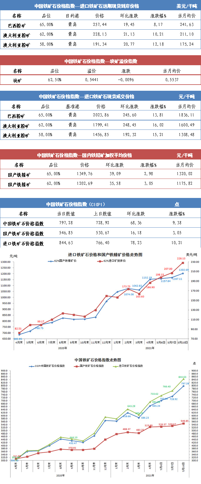 【行業指數】5月10日中國鐵礦石價格指數
