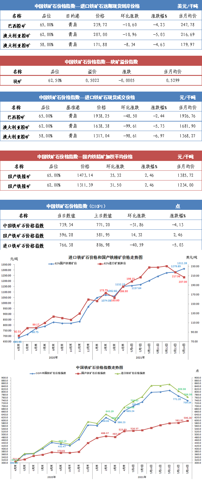 【行業(yè)指數(shù)】5月14日中國(guó)鐵礦石價(jià)格指數(shù)