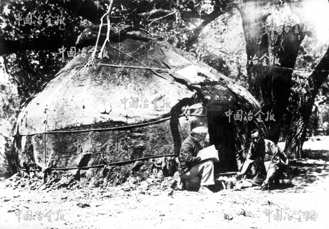1927年5月~1930年8月,我國著名的地質學家丁道衡參加了西北科學考察團,在這次考察中,年僅28歲的丁道衡發現了白云鄂博鐵礦。1933年,丁道衡在《地質匯報》發表了著名的《綏遠白云鄂博鐵礦報告》。新中國成立后,1953年,國家制定第一個五年計劃,將包頭確定為國家重點工業基地。1954年,籌建包頭鋼鐵公司。1956年,包頭至白云鄂博的鐵路開始鋪軌。1957年,白云鄂博鐵礦開始人工開采和主礦初期建設,作為建設包鋼的主要原料基地。圖為1928年,丁道衡(右)在蒙古包前工作。(包鋼檔案館供圖)