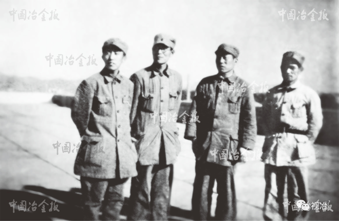 1948年2月19日鞍山解放。當時,國民黨反動派尚盤踞著沈陽等主要城市。直至1948年11月2日,東北全境解放,鞍鋼完全回到人民手中。圖為1948年4月,鞍山鋼鐵廠廠長郝希英(右二),副廠長王勛(左二)與工作人員在鞍鋼“大白樓”頂合影。(鞍鋼博物館 供圖)